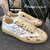 Sneaker von Nero Giardini. Sportlich, chic und einfach gut zu kombinieren kommt dieser Sneaker auf der Runnersohle für den Herbst. Beige und metallic Leder wechseln sich hier gekonnt ab und bringen über die Nahtführung den schönen Look. Schwarze Leder Elemente brechen dazu die cleane Optik auf und die hinten leicht erhöhte Sohle sorgt für den guten Stand. Innen ist er mit einem Fußbett versehen, welches auf Wunsch zum wechseln ist.