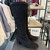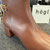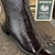 Stiefel von Newd. Schönes Veloursleder in dunklem braun schmiegt sich hier an den Fuß. Der Leisten ist spitz gehalten und wird durch die aufgesetzte Naht verstärkt, gleichzeitig wird so gekonnt das Bein verlängert und der Fuß verschlankt. Der Absatz ist als halber Block feminin und bietet gleichzeitig guten Stand. Der Schaft ist etwas kürzer als bei einem langen Reiterstiefel und durch die in Falten gelegte Machart bekommt er seinen besonderen Look. Innen ist er weich abgepolstert und bietet über den Reißverschluss einen einfachen Einstieg.