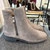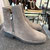 Stiefelette von Brunate. Graues Veloursleder lässt sich perfekt mit jedem Winteroutfit kombinieren. Die Sohle gibt auch an glatten Tagen guten Halt und isoliert wunderbar von unten. Das Leder schmiegt sich an den Fuß und keine Nähte können hier stören. Die Stiefelette hat innen wie außen einen Reißverschluss, so dass man sehr einfach und komfortabel in den Schuh steigen kann. Innen ist sie komplett mit Lammfell verarbeitet, so wärmt sie wenn es nötig ist und lässt sogar ein Barfußtragen im Winter zu.