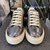 Sneaker von Ambitious. Sportlichkeit steht bei diesem Sneaker im Vordergrund, die Sohle erinnert an einen Laufschuh und ist mit angedeuteten Spikes versehen. Das Obermaterial ist herbstlich und mit dezenten metallic Elementen versehen, welche den femininen Touch in den Sneaker bringen. Das dezente Farbelement an der Ferse lockert bewusst auf. Innen ist er weich gepolstert und bietet eine Sohle, welche auf Wunsch zum wechseln ist.