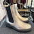 Stiefelette von Nero Giardini. Cooler Metallic Leder Boot in gold, sportlich und doch ein Hauch chic. Das weiche Leder schmiegt sich wunderbar an den Fuß und die Passform lässt sich durch die Senkel individualisieren, außerdem sind die Senkel zusammen mit der Sohle ein gelungener Kontrast zum Leder. Innenliegend der Reißverschluss, welcher das Anziehen einfach gestaltet. Auch innen ist die Stiefelette komplett aus Leder, welches sie angenehm tragen lässt und das Fußbett ist auf Wunsch zum wechseln.