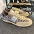 Mid-Cut Sneaker von Nero Giardini. Wunderbar zu kombinieren ist dieser Herbst Sneaker, die Farbe lässt einem alle Möglichkeiten. Gold glänzende Glattleder wird gekonnt um Veloursleder ergänzt und bekommt durch die goldenen Nieten einen edlen Touch. Die Senkel schmiegen sich gekonnt gekonnt in die Optik ein und lassen die perfekte Passform zu. Der innenliegende Reißverschluss ermöglicht dazu das einfache Anziehen. Innen ist er komplett aus Leder und mit einem Fußbett, welches auf Wunsch zum wechseln ist.