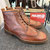 Stiefelette von Pikolinos. Schönes braunes Leder, welches einen tollen Farbverlauf hat. Der Schaft ist höher, so dass es eigentlich ein Mix aus Stiefel und Stiefelette ist. Die Schnallen lockern zusammen mit dem gerafften Schaft die Optik des Boots auf und geben ihm so seine besondere Optik. Der Blockabsatz und die Profilsohle unterstreichen den derben Anspruch und polstern gleichzeitig den Auftritt wunderbar. Innen ist dann die bequeme Ausstattung mit einem Fußbett, welches auf Wunsch zum wechseln ist. Innenliegend der Reißverschluss, so dass man bequem einsteigen kann.